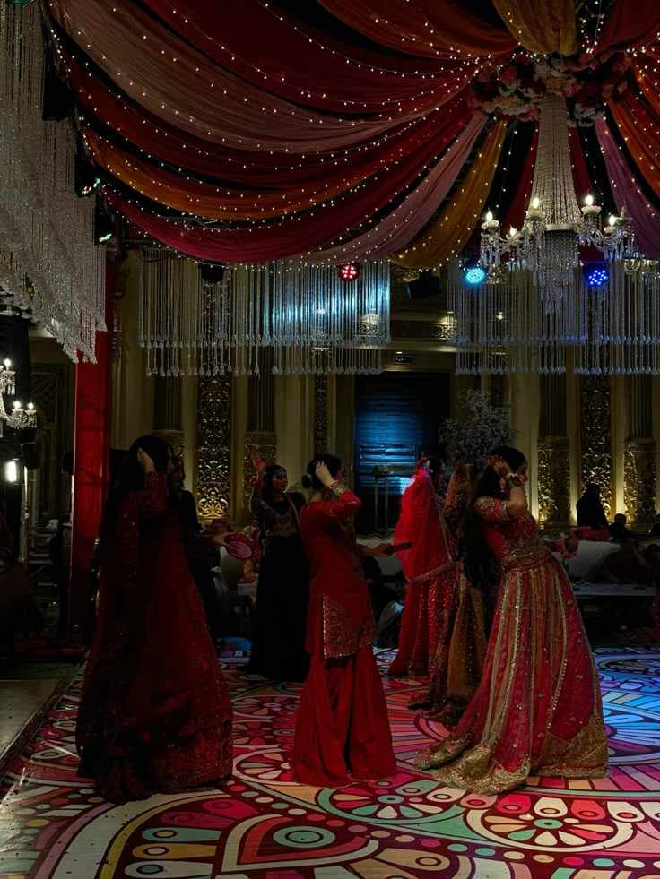 With a collective squeal of delight, the bride's side contingent made their way onto the stage. Ishika, Tanvi, Saanvi, and their friends, including Diya and Kiara, took their positions, their eyes sparkling with anticipation. The air was electric with excitement as they prepared to showcase their dancing skills.